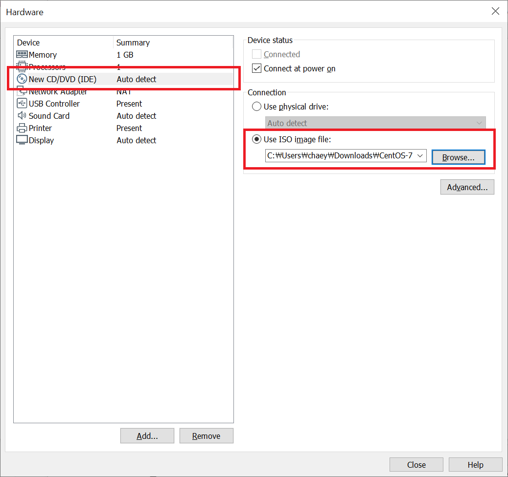 그림 6-4 처럼 준비된 CentOS 설치를 위한 이미지 파일을 지정 해주세요.