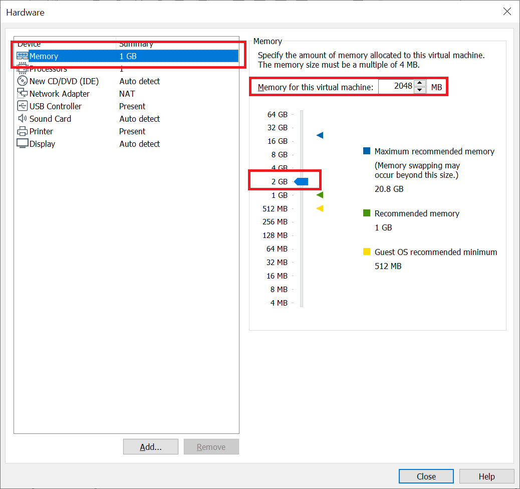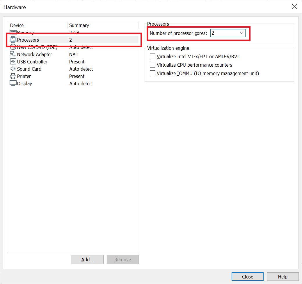 6. Customize 를 선택 하신 후 그림 6-2처럼 Memory는 2GB로, 그림 6-3처럼 Processor는 2개로,