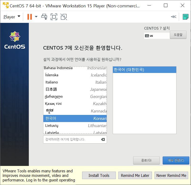 VMware에 CentOS 7 을 설치하려고 합니다.